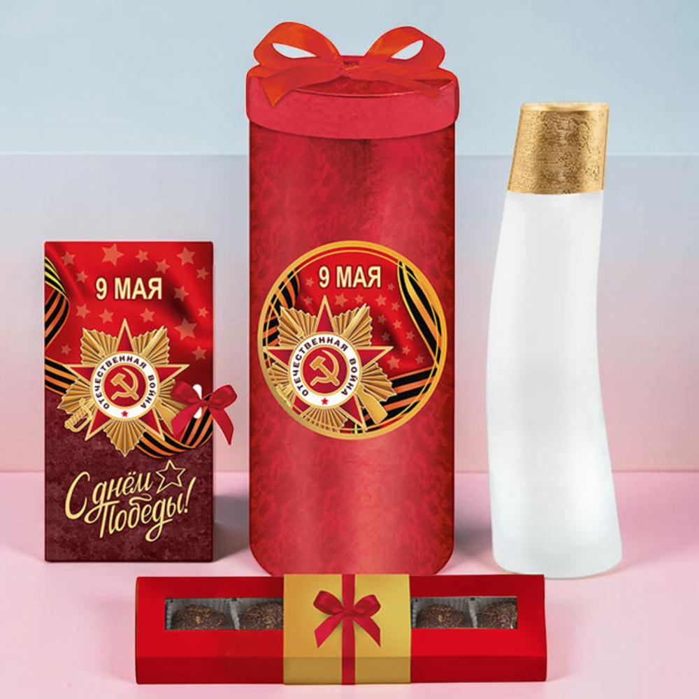 Подарок 045 / Конфеты «Марципановые» в горьком шоколаде, конфеты ручной работы. Плитка малая «С Праздником Победы!» / Шоколад молочный.