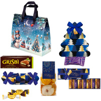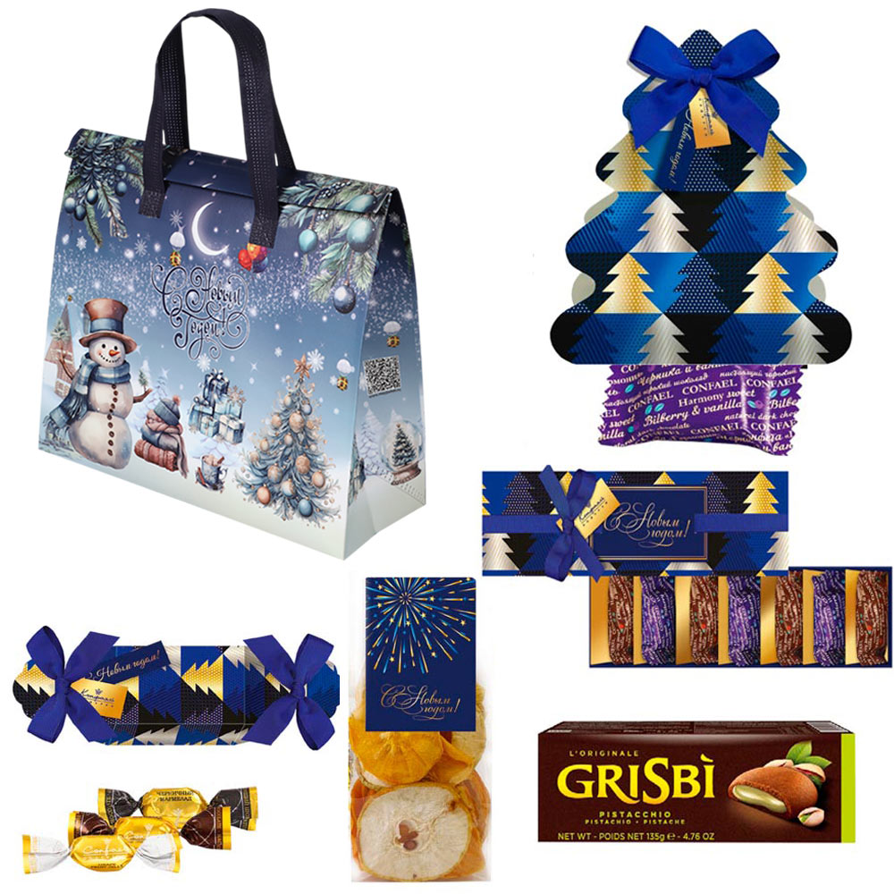 - Подарок 170 / Конфеты «Комбинированные» в горьком шоколаде (черника и ваниль) 120 г - Подарок 003 / Конфеты «Желейные» в горьком шоколаде (вишневые, черничные, виноградные) 95 г - Подарок 058 / Конфеты «Комбинированные» в горьком шоколаде (черника и ваниль, вишня и ваниль) 105 г - Мини-пакет 02 / Фруктовые чипсы в ассортименте / 100 г - Печенье с фисташковой начинкой ТМ GRISBI / Италия / 135 г Возможность брендирования: - стикер / бирка с логотипом