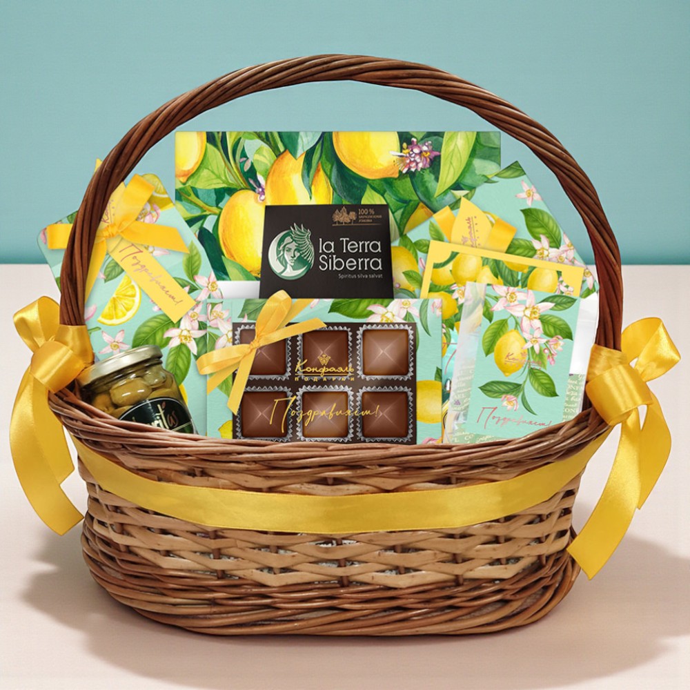 Поздравление 16 / Шоколадные конфеты «Ассорти» со сливочными начинками/ 140 г Подарок 081/ Конфеты «Сухофрукты» в горьком шоколаде (финик, слива, абрикос)/ 155 г Подарок 019/ Мармелад желейный со вкусами «Сливочная намелака», «Зеленая дыня», «Банан»/ 255 г Поздравление 06/ Шоколадные конфеты «Ассорти» с кремовой начинкой , мармелад желейный со вкусом «Банан»/ 80 г Поздравление 09/ Шоколадные конфеты «Ассорти» с шоколадное начинкой/ 95 г Мини-пакет 02/ Конфеты «Комбинированные» в горьком шоколад (виноград и ваниль)/ 150 г Оливки зеленые без косточки Liberitas/ 240г Чайный напиток с Саган-Дайля/ 60г