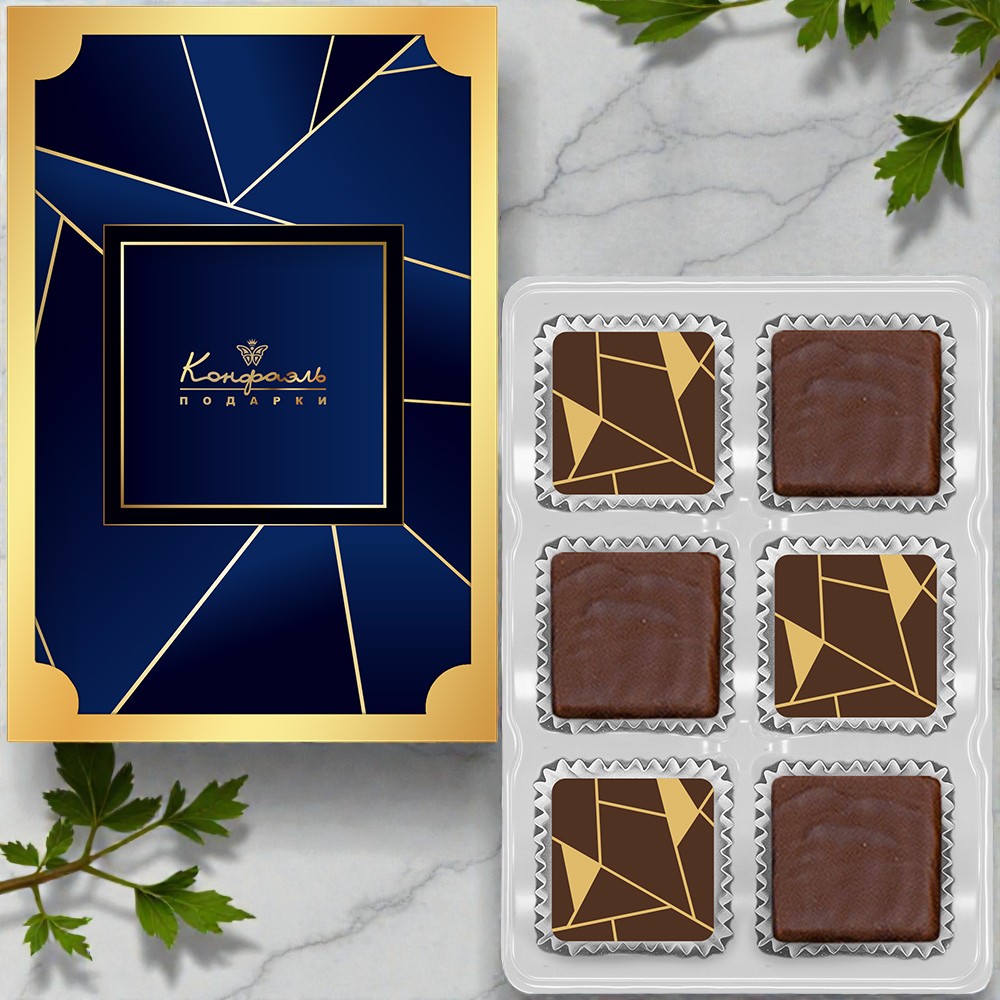 Шоколадные конфеты «Ассорти» с кремовой начинкой идекором, конфеты «Суфле» в горьком шоколаде со вкусом «Банан»