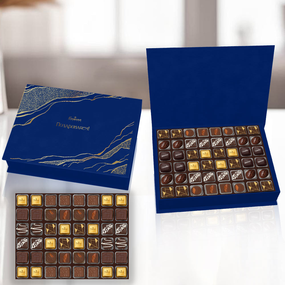 Шоколадные конфеты «Ассорти» со сливочными и кремовой начинками, с кремовой начинкой и декором, шоколад молочный с миндалем, конфеты «Желейные» в горьком шоколаде (апельсиновые), конфеты «Марципановые» в горькомшоколаде, конфеты «Сухофрукты» в горьком шоколаде с декором (финик, слива), конфеты«Суфле» в горьком шоколаде со вкусом «Банан», конфеты «Мягкий грильяж» в горьком шоколаде