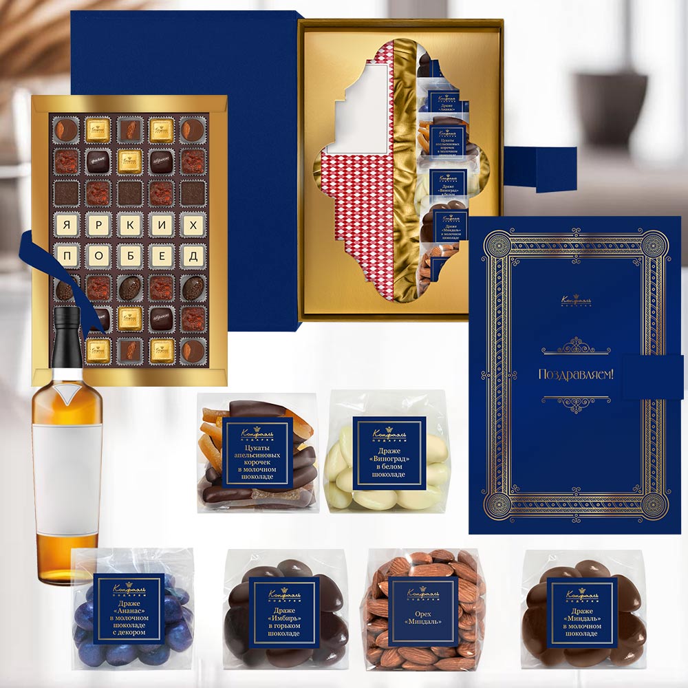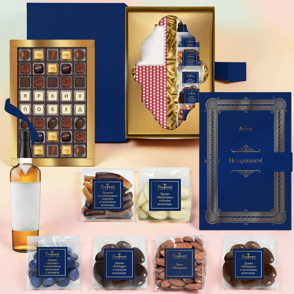 Шоколадные конфеты «Ассорти» сосливочными начинками и декором, шоколадмолочный с миндалем, конфеты «Марципановые» вгорьком шоколаде, конфеты «Сухофрукты» в горьком шоколаде (финик, абрикос), конфеты ручной работы / 405г Мини-пакет 01 / Цукатыапельсиновых корочек в молочном шоколаде / 50г Мини-пакет 01 / Драже «Ананас» вмолочном шоколаде с декором / 75г Мини-пакет 01 / Драже «Имбирь» вгорьком шоколаде / 75г Мини-пакет 01 / Драже «Виноград» вбелом шоколаде / 75г Мини-пакет 01 / Орех «Миндаль» / 75г Мини-пакет 01 / Драже «Миндаль» вмолочном шоколаде / 75г