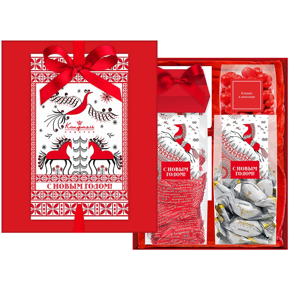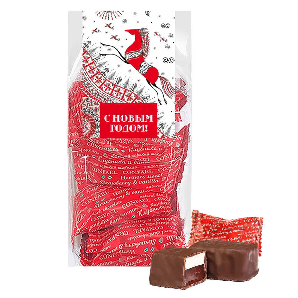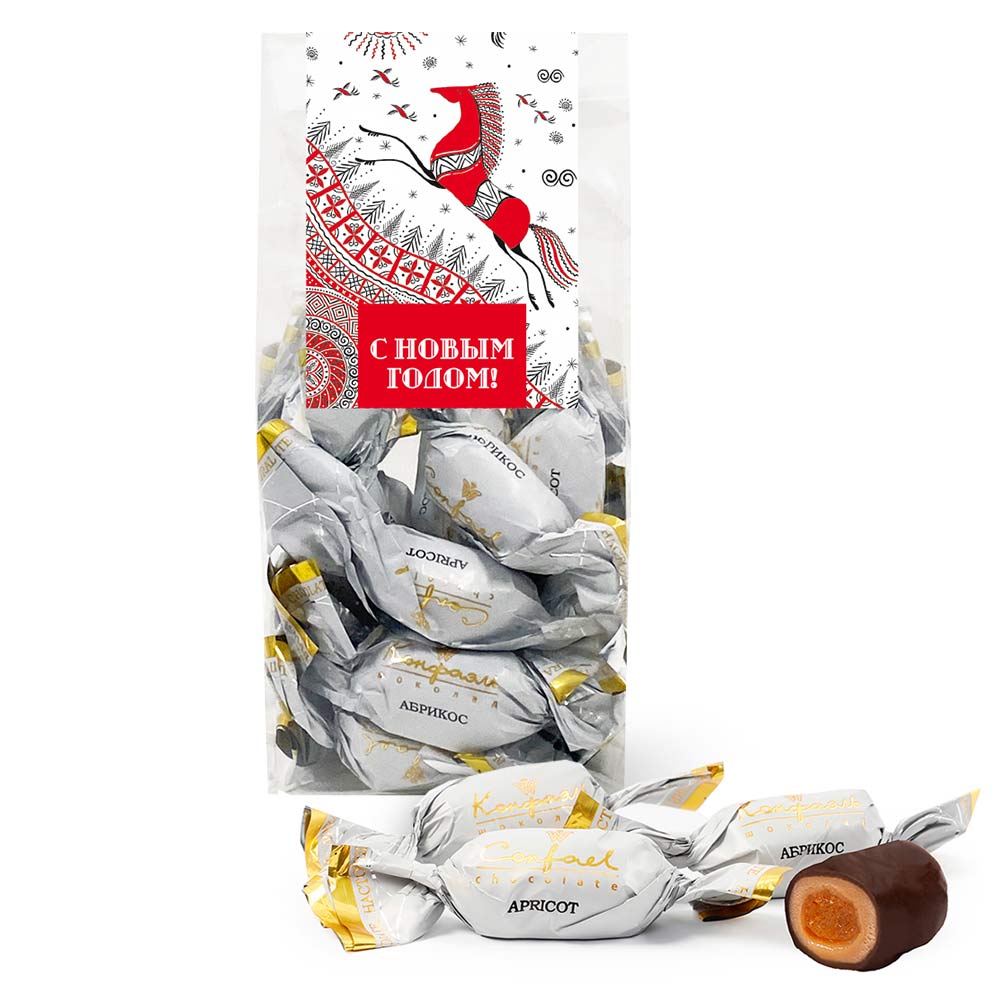 Плитка малая «С Новым годом!» / Шоколад молочный / 60 г Мини-пакет 02 / Конфеты «Комбинированные» в горьком шоколаде (клубника и ваниль) / 150 г Мини-пакет 02 / Конфеты«Сухофрукты» в горьком шоколаде (абрикос) / 150 г Мини-пакет 01 / Драже «Клюква» в шоколаде / 75 г Подарок 015 / Конфеты «Мягкий грильяж» в горьком шоколаде / 45 г