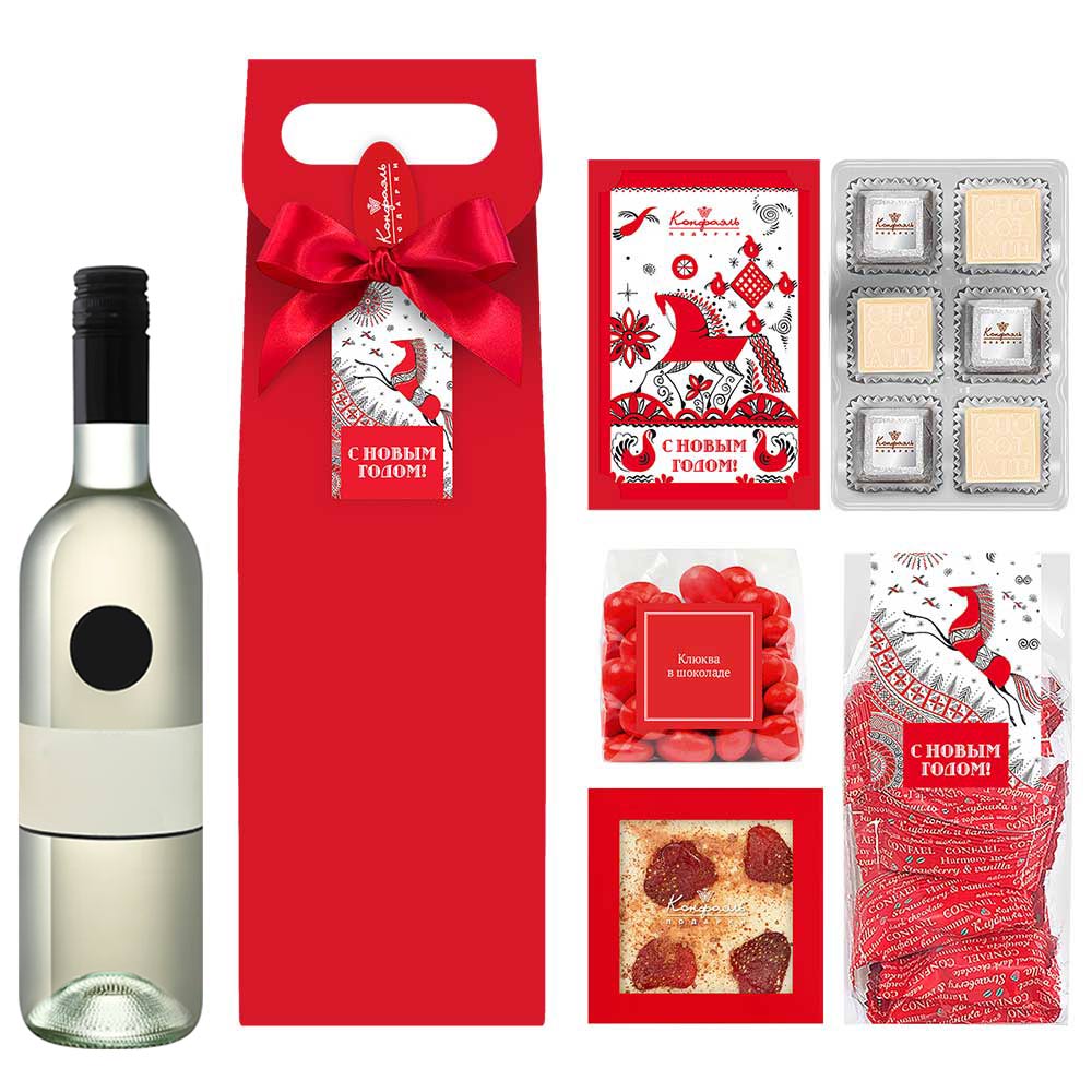 Поздравление 06 / Шоколадные конфеты «Ассорти» со сливочной и кремовой начинками / 55 г Мини-пакет 02 / Конфеты «Комбинированные» в горьком шоколаде (клубника и ваниль) / 150 г Мини-пакет 01 / Драже «Клюква» в шоколаде / 75 г Шоколадный комплимент / Шоколад белый с клубникой и малиновым кранчем / 35 г