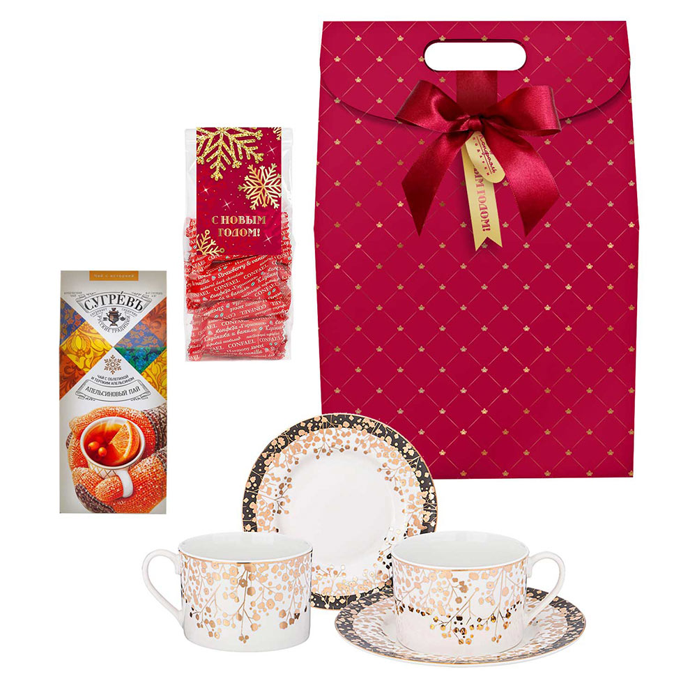 Мини-пакет 02 / Конфеты «Комбинированные» в горьком шоколаде (клубника и ваниль) / 150 г Чай «СУГРЕВЪ»Апельсиновый пай / Чай черный с облепихой и терпким апельсином / 60 г Чайный набор Lefard Triumph / 4 предмета