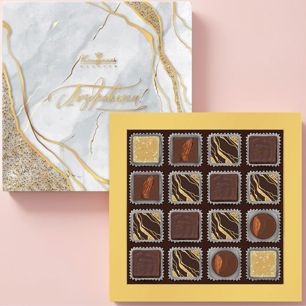 Шоколад молочный с миндалем, шоколадные конфеты «Ассорти» с шоколадной начинкой и декором, мармелад желейный «Апельсиновый», конфеты «Суфле» в горьком шоколаде (ванильное)