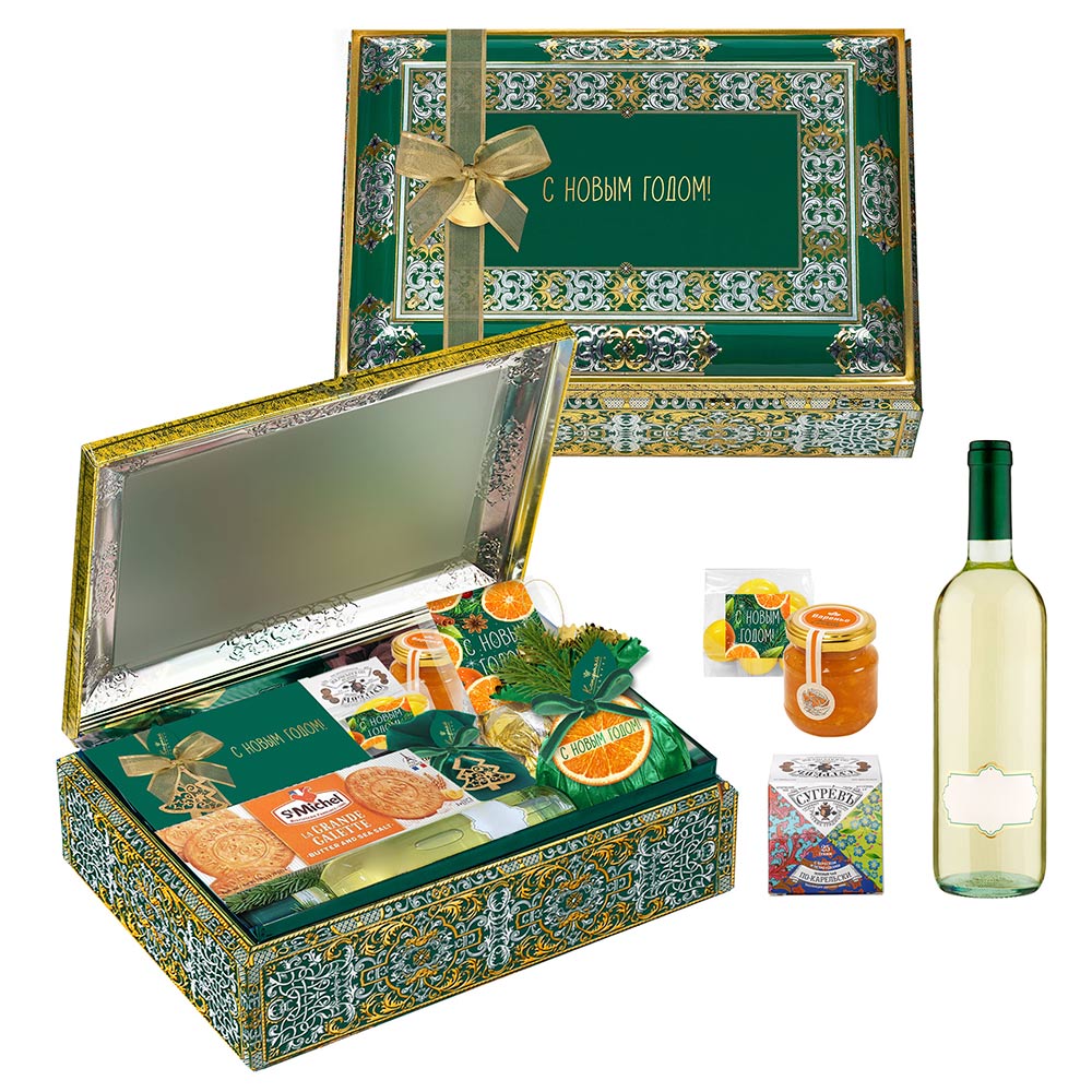 Подарок 019 / Шоколадные конфеты «Ассорти» с кремовой и сливочной начинками, со сливочной начинкой и декором, конфеты «Мягкий грильяж» в горьком шоколаде, конфеты «Суфле» вгорьком шоколаде (апельсиновое) / 195 г Мешок 002 / Драже«Миндаль» в молочном шоколаде / 150 г Подарок 033 / Конфеты «Суфле» в горьком шоколаде (шоколадное, ванильное, кофейное), конфеты «Сухофрукты» в горьком шоколаде (финик, слива, абрикос) / 120 г Мини-пакет 02 / Шоколадные конфеты «Ассорти» с шоколадной начинкой / 150 г Мини-пакет 01 / Драже«Лимон» в шоколаде / 90 г Варенье «Апельсин с имбирем» / 150г Чай «СУГРЕВЪ» » По-карельски / Зеленый чай с вереском и незабудками / 25 г Печенье сливочное с морской солью"St Michel" 150г