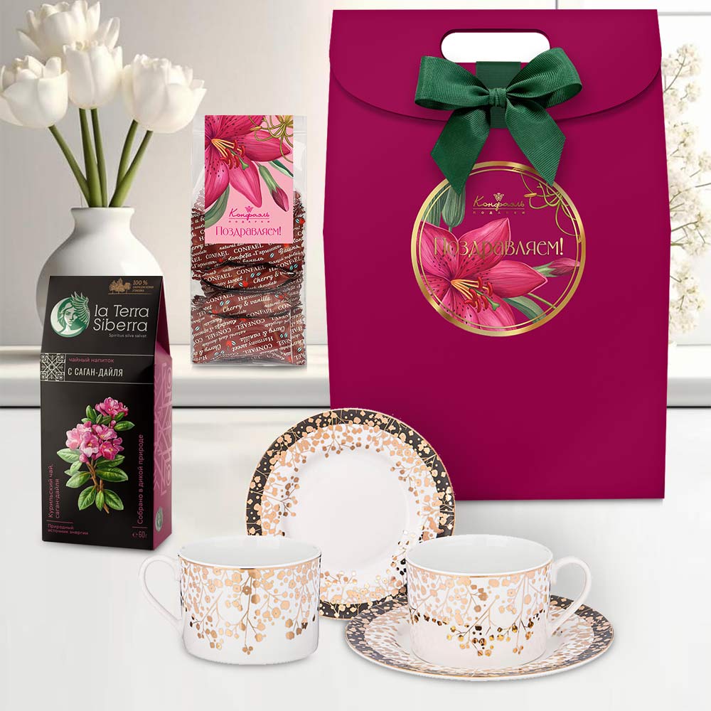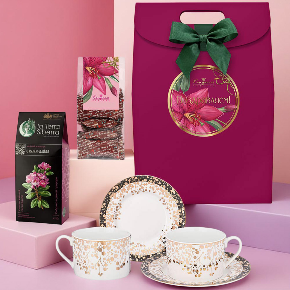Мини-пакет 02 / Конфеты «Комбинированные» в горьком шоколад (вишня и ваниль) / 150 г Чайный напиток с Саган-Дайля / 60г Чайный набор Lefard Triumph / 4 предмета