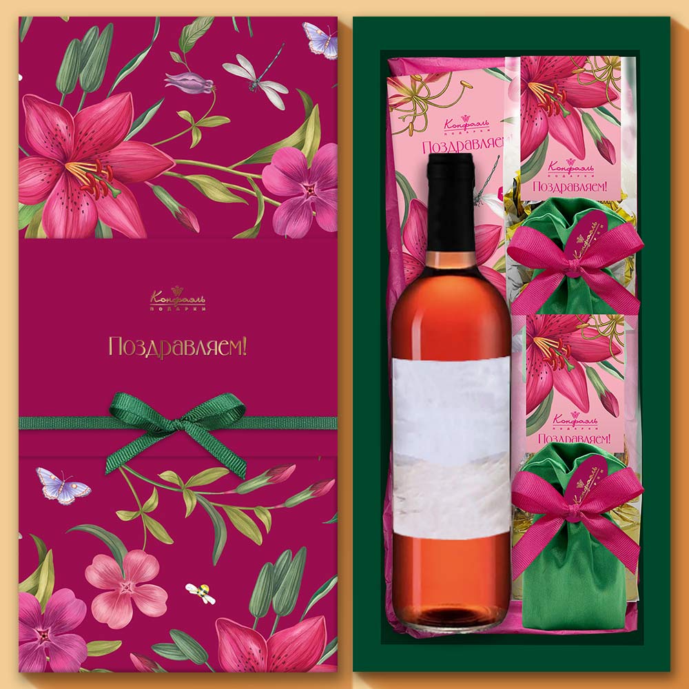 Плитка малая «Поздравляем!» / Шоколад молочный / 60 г Мини-пакет 02 / Конфеты «Желейные» в горьком шоколаде (виноградные) / 150 г Мини-пакет 02 / Шоколадные конфеты «Ассорти» с шоколадной начинкой / 150 г Мешок 001/ Драже «Миндаль» в молочном шоколаде / 100 г Мешок 001 / Драже «Клубника» в шоколаде / 100г