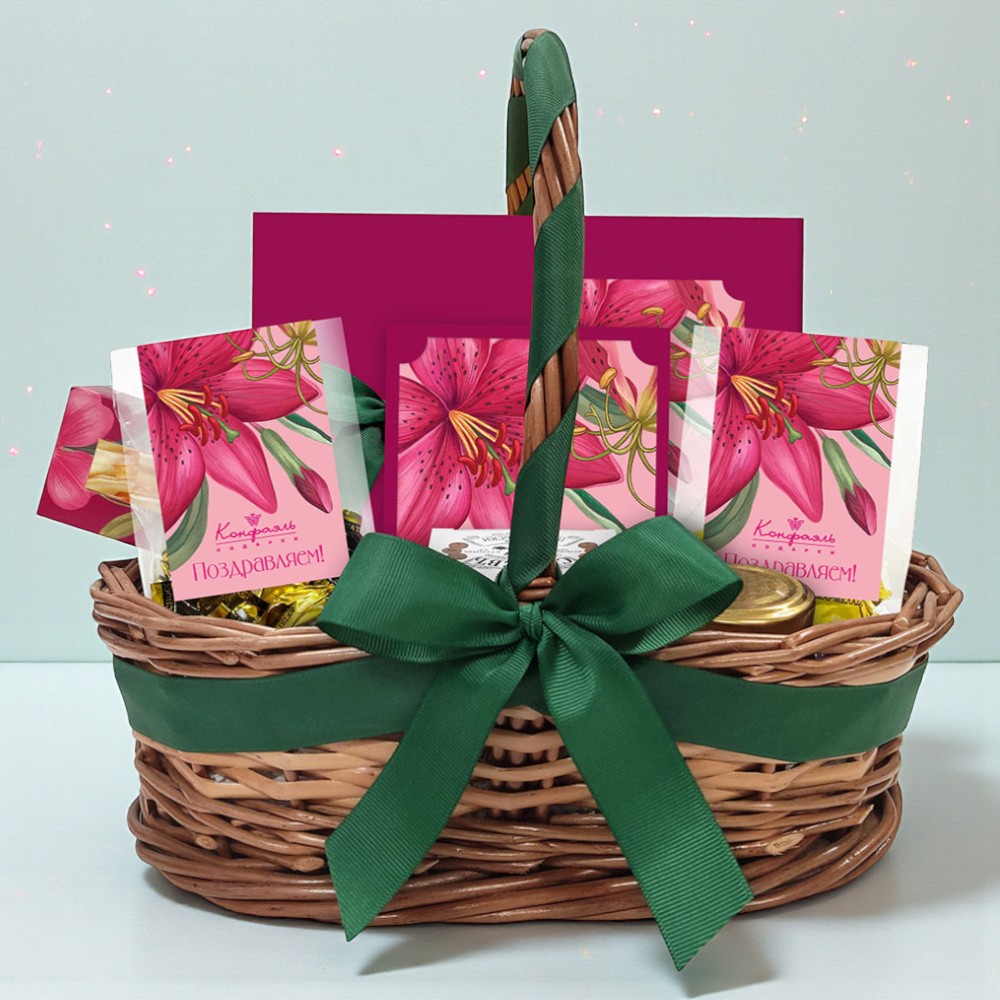 Поздравление 20/ Шоколадные конфеты «Ассорти» со сливочными начинками, с кремовой начинкой и декором, конфеты «Суфле» в горьком шоколаде со вкусом «Игристого розе»/ 170 г Поздравление 06/ Шоколадные конфеты «Ассорти» со сливочными начинками, конфеты «Суфле» в горьком шоколаде со вкусом «Игристого розе»/ 45 г Подарок 045/ Цукаты апельсиновых корочек в молочном и в белом шоколаде/ 80 г Мини-пакет 02/ Конфеты «Желейные» в горьком шоколаде (черничные)/ 150 г Мини-пакет 02/ Конфеты «Желейные» в горьком шоколаде (виноградные)/ 150 г Варенье «Малина с мятой»/ 150 г Чай «СУГРЕВЪ» По-карельски/ Зеленый чай с вереском и незабудками/ 25 г