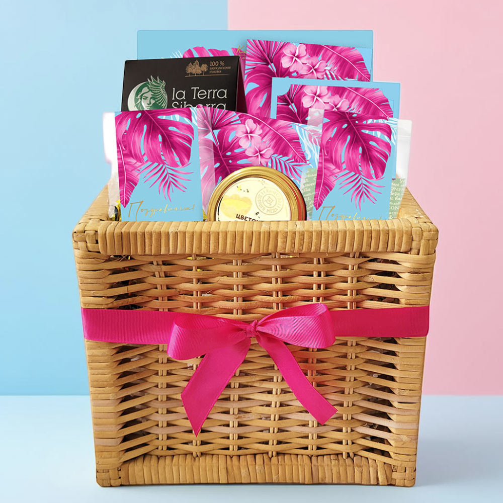 Поздравление 16/ Шоколадные конфеты «Ассорти» со сливочной начинкой, мармелад желейный со вкусом «Сливочная намелака», мармелад желейный «Черничный», конфеты «Суфле» в горьком шоколаде ( клубничное)/ 145 г Поздравление 09/ Шоколадные конфеты «Ассорти» с шоколадной и кремовой начинками/ 95 г Плитка малая «Поздравляем!»/ Шоколад молочный/ 60 г Поздравление 06/ Шоколадные конфеты «Ассорти» со сливочной начинкой, конфеты «Суфле» в горьком шоколаде (клубничное)/ 45 г Мини-пакет 02/ Конфеты «Желейные» в горьком шоколаде (виноградные)/ 150 г Мини-пакет 02/ Конфеты «Комбинированные» в горьком шоколад (виноград и ваниль)/ 150 г Мед натуральный цветочный/ 150 г Чайный напиток с Саган-Дайля/ 60г